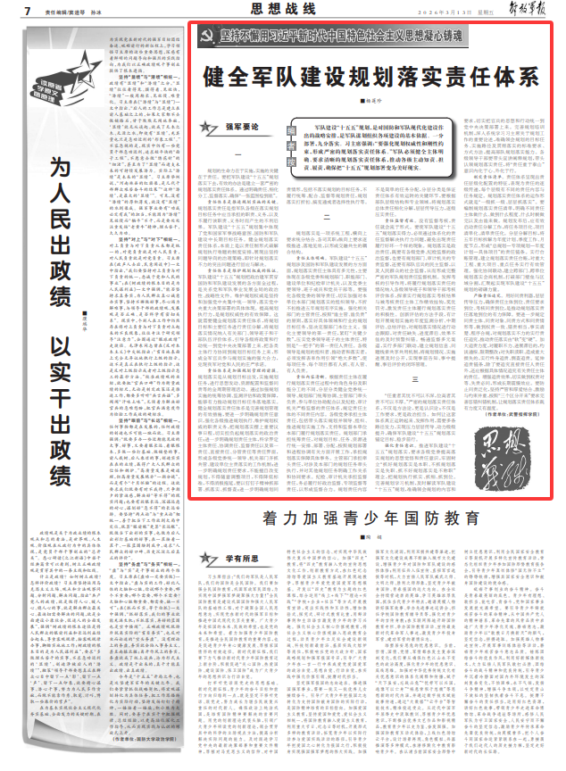健全军队建设规划落实责任体系